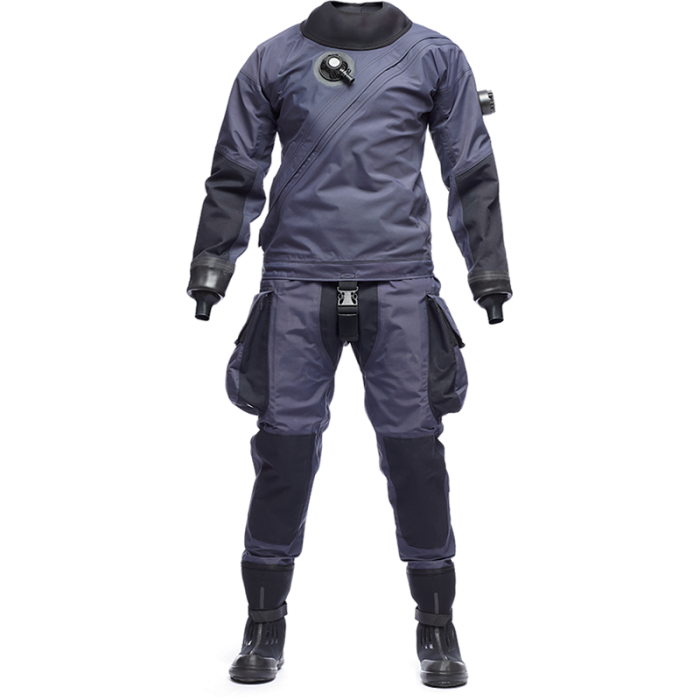 Pour ce qui est des caractéristiques plus techniques , on pourra retrouver une fermeture à glissière étanche avec un rabat sur celle-ci, deux purges Apeks et deux poches cargo avec sandows sur les cuisses.