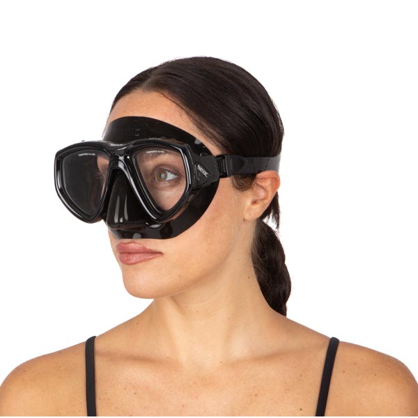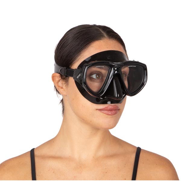 Le Masque SEAC One S/BL Noir utilise deux lentilles symétriques en verre trempé intégrées dans une monture en polycarbonate robuste. Sa jupe en silicone liquide assure une étanchéité naturelle et douce pour la peau. La sangle se règle facilement grâce à la boucle Easy Touch. Ce modèle accepte des verres optiques pour la myopie (vendus séparément), ce qui en fait un masque graduable polyvalent pour la plongée loisir, le snorkeling ou la chasse sous-marine. Un étui rigide transparent est inclus pour protéger le masque lors du transport.