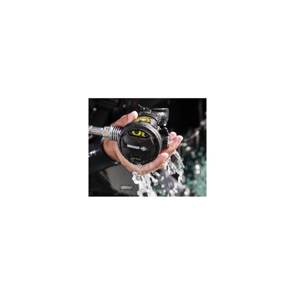 Ce modèle intègre un deuxième étage compensé à clapet aval, permettant de conserver un effort respiratoire constant, quelle que soit la pression. Le réglage Venturi offre la possibilité d’adapter le flux d’air selon les conditions et l’utilisation, améliorant le confort respiratoire lors de la mise en service de l’octopus.